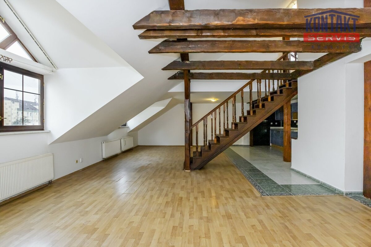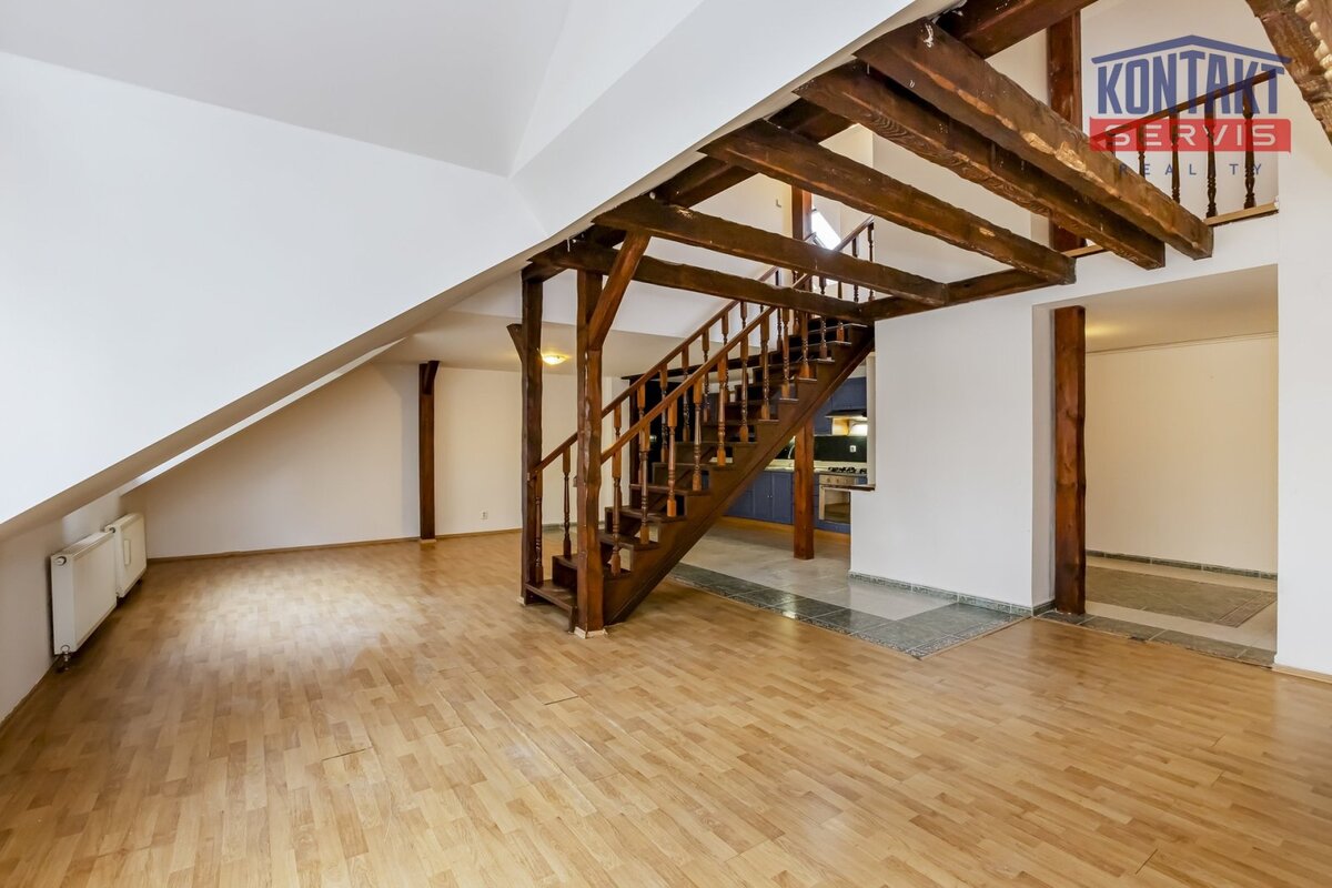 Exkluzivně nabízíme k prodeji zděný mezonetový byt 3+kk, který se nachází v oblíbené části širšího centra Českých Budějovic, Riegrově ulici. Byt je umístěn ve 3. NP (půdní vestavba) menšího činžovního domu, který byl v roce 2005 kompletně rekonstruován. Byt samotný se skládá z velkého obývacího pokoje s kuchyňským koutem, samostatné ložnice a velké koupelny s rohovou vanou. V mezonetové části bytu se pak nachází jedna ložnice a obytná galerie. Byt je vybaven původní kuchyňskou linkou se spotřebiči. Vzhledem k celkové velikosti obytného prostoru je byt možno v rámci předpokládané rekonstrukce dispozičně rozšířit až na 5+kk. K bytu náleží sklep a samostatná garáž v přízemí domu (43 m2), která je vhodná jako skladovací prostor (parkování pouze pro nižší vůz). Topení a ohřev vody zajišťuje plynový kotel. K dispozici je též menší společná zahrada s dvorkem. Financování je zajištěno hypotečním úvěrem, doporučujeme osobní prohlídku. PENB G.
