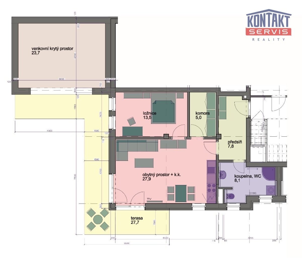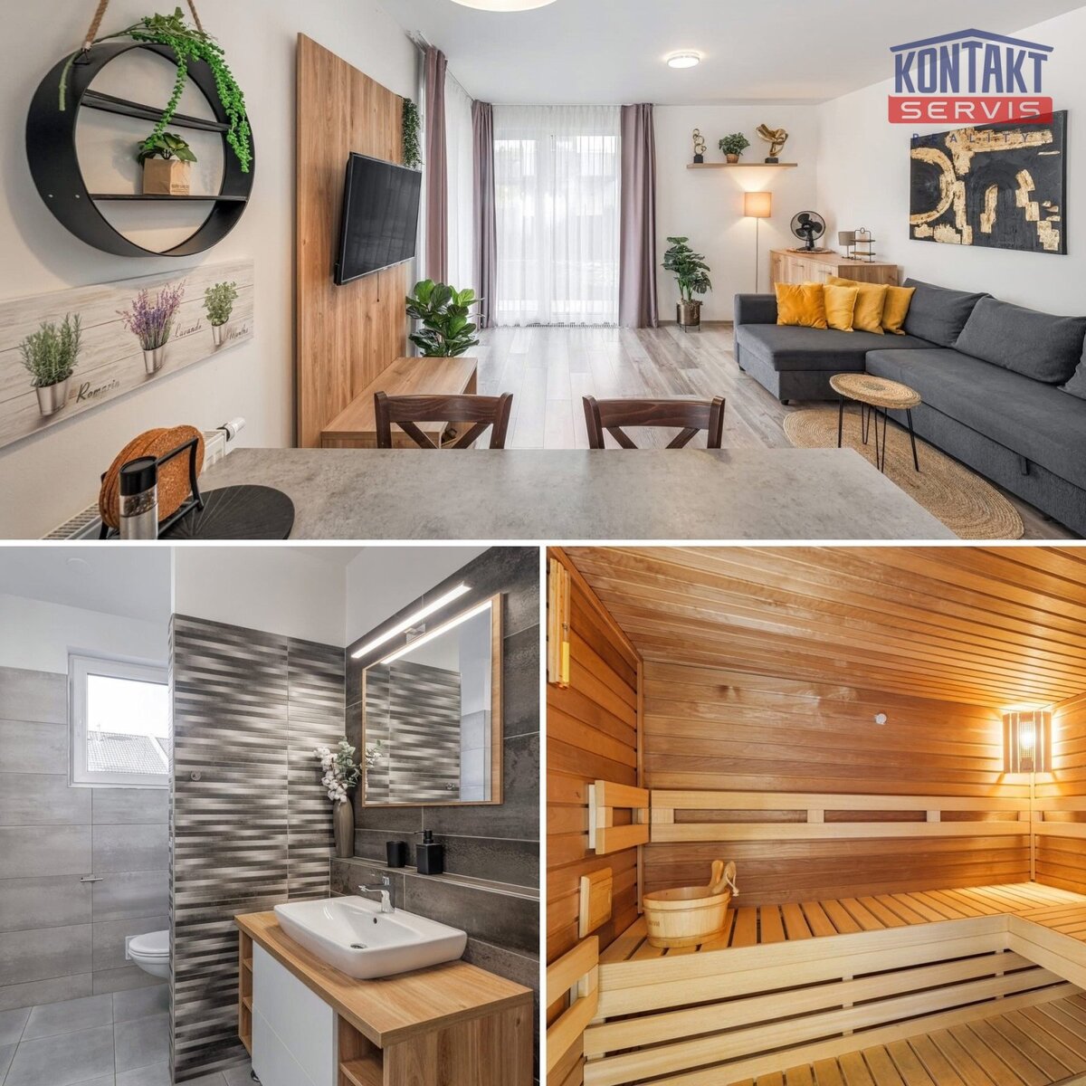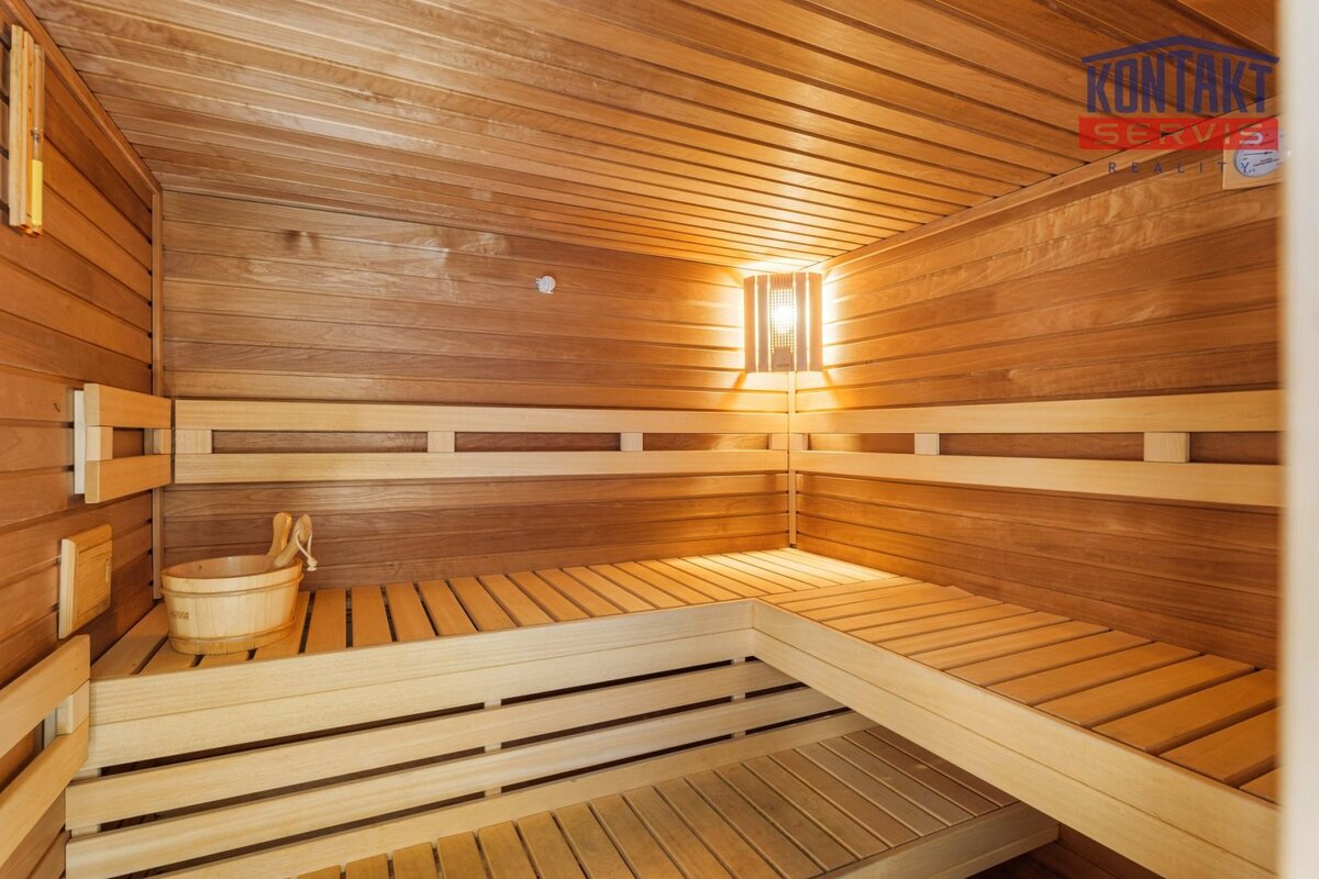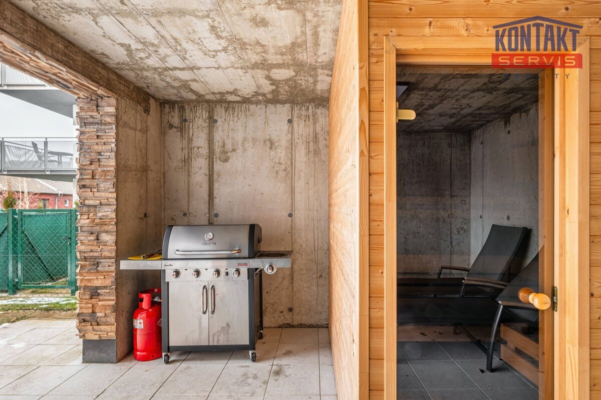Dispozice: 3+KK se zahradou, terasou a saunou