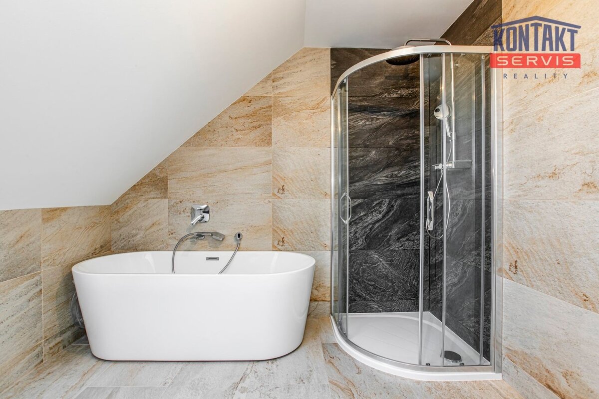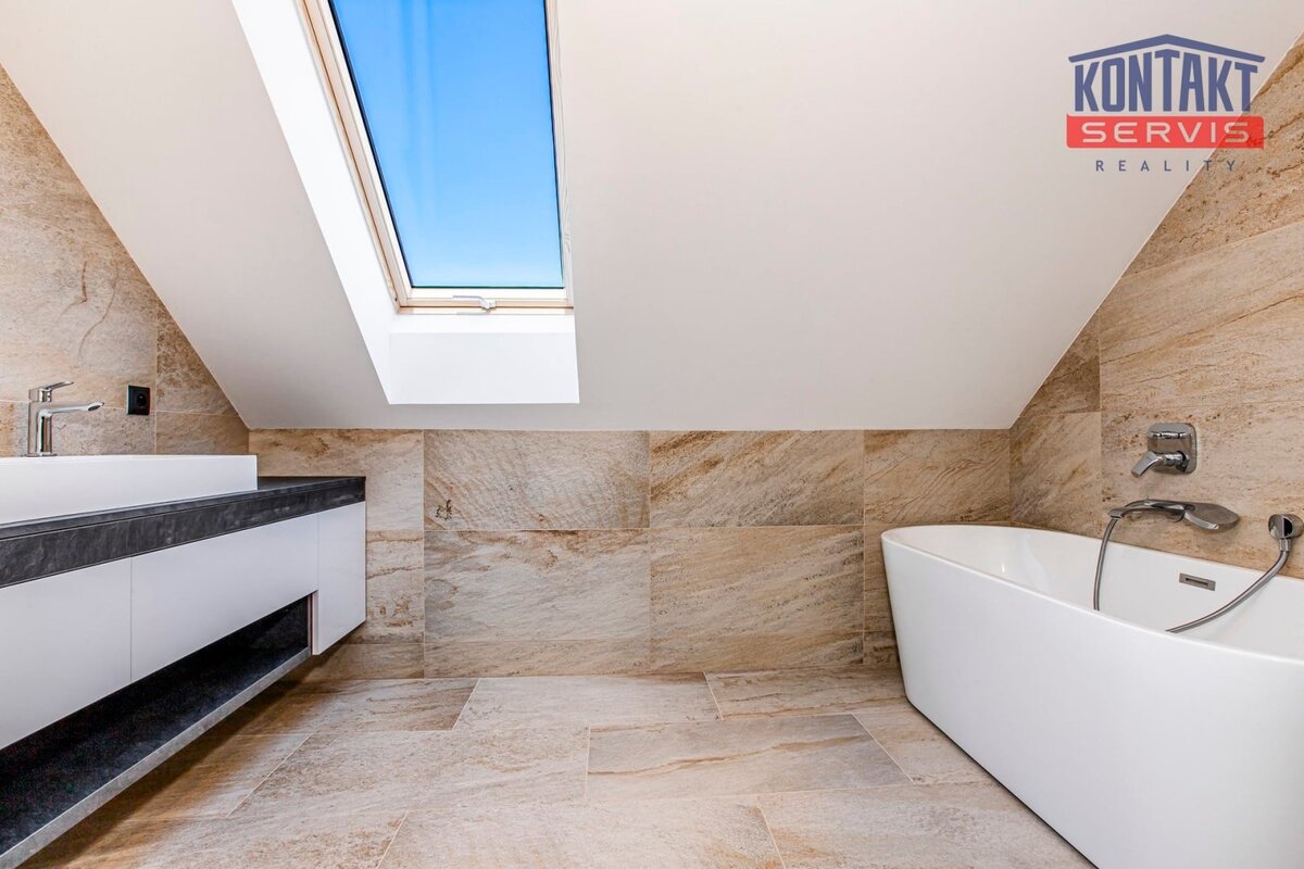 Tato nádherná polovina dvojdomu vznikla v režii zkušené rodinné stavební firmy, která ji budovala s jediným cílem – vytvořit skutečně kvalitní a promyšlené bydlení hodné té nejnáročnější rodiny. Každý metr čtvereční, každý materiál, každé technologické řešení – vše bylo voleno s maximální péčí a rozmyslem. A výsledek? Dům, do kterého se prostě zamilujete!