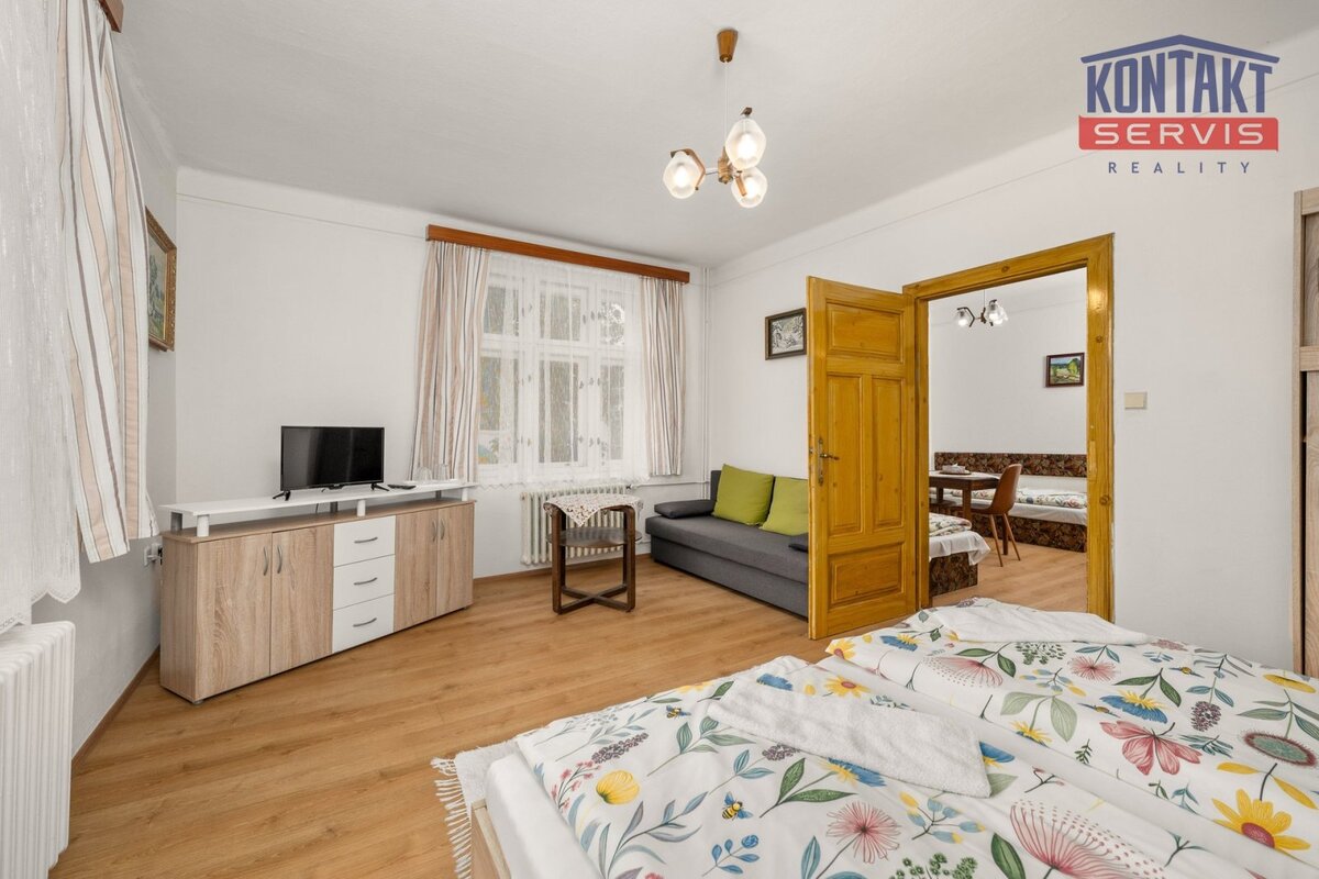 Nabízíme k prodeji rozsáhlý rodinný dům s několika apartmány v klidné šumavské lokalitě Kůsov u Stach. Nemovitost je ideální kombinací vlastního bydlení a investice, případně jako vícegenerační dům s možností krátkodobého i dlouhodobého pronájmu.