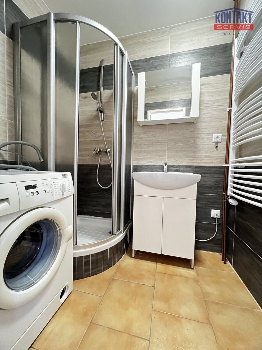 horní skříňku se zrcadlem, koupelna je vybavena pračkou Bosch. Samostatné